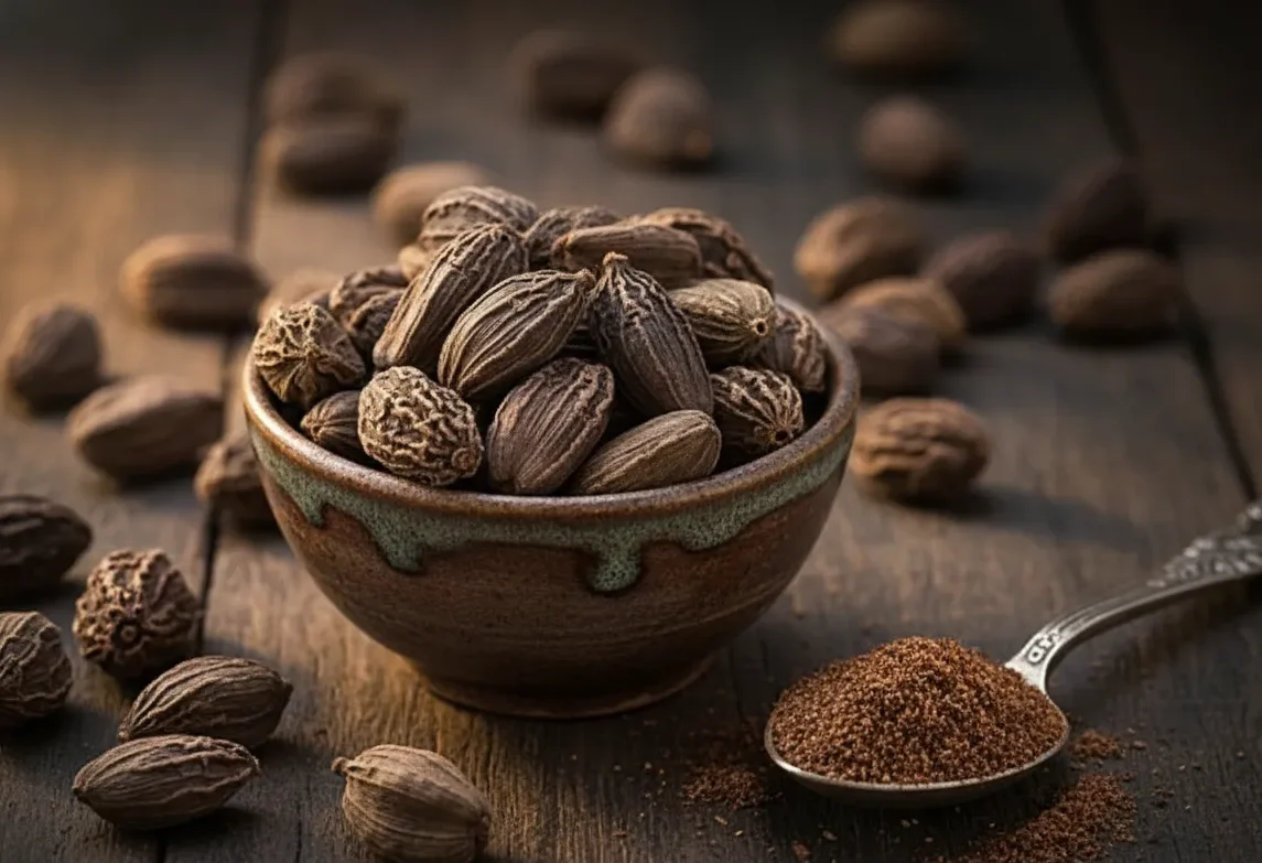 Of all the world’s spices, black cardamom is perhaps the most difficult to describe. Flowery yet earthy, powerful yet delicate, this podded seed is truly unique. Pungent black cardamom has been smoke-dried, making it better suited to braised meats and savory recipes than green cardamom pods.Smoky flavor used in garam masala.
