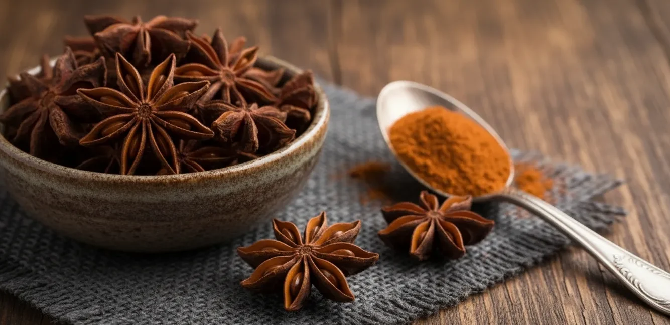 Aromatic star-shaped spice for curries.Star Anise, also called Chinese Star Anise and Star Aniseed, is a spice obtained from the fruits of an Asian shrub. It is so-named because the seed pods are star-shaped and contain a highly aromatic compound called anethole, which is responsible for the anise-like flavor of the spice.